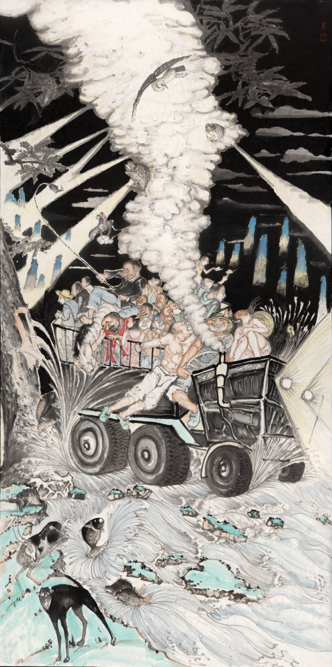 至于人类学、社会学的田野方法,对我而言更像是一种个人行为方式。我们除了从知识系统获取认知世界的间接经验,到了现场面对繁杂对象时,要把它变成画面,既靠绘画本体语言的训练,也靠现场的感知力。这两者没有先后之分,只是不同维度,始终处于反复交织的状态,无需刻意调和。就像伟大的工匠,技术训练到一定程度,自然能把粗糙石头打磨成精致物件;绘画也是如此,把这些不同领域的东西互相渗透、揉搓,才有可能建构起自己的知识系统。另外,我个人很喜欢庄子那种“逍遥游”状态,抑或称之为“游离”的哲学,这本就是中国画里很本源的东西。