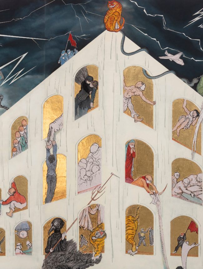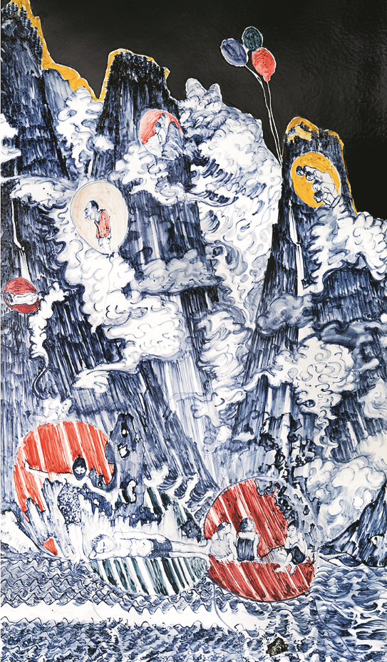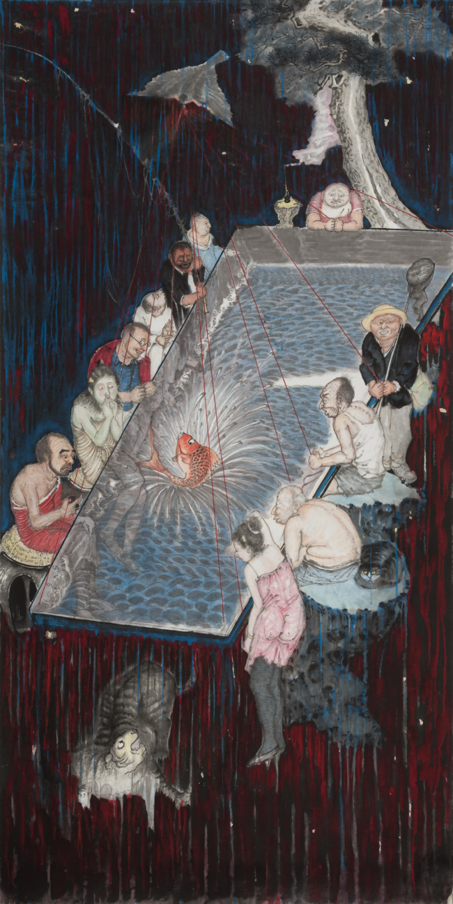 雷:在这个时代里谈艺术的审美,我觉得略有些矫情。生活在当下的实际感受中,我更愿意去关注社会到底怎么了。所以水墨对我来说,只是记录与表达的一种方法,而且是个比较便利的方法。我不觉得水墨不具备记录社会的可能性,比如关山月先生,他早期画的那些社会图景,一点也没有损伤其中所呈现的绘画本体的高度。他依旧在作品里为我们展现了许多值得正视的艺术核心——如何塑造对象,如何在场景架构中营造气势磅礴的感觉,又如何用极其细微的寥寥数笔,生动再现一个世界。这些东西从来不是矛盾的,最大的问题其实来源于创作者的能力,而不是语言本身。
