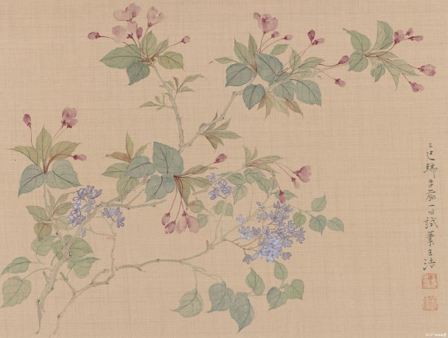 色彩的运用,更彰显了王法独特的审美追求,也让他的画作在传统底蕴中透出当代审美趣味。他摒弃了浓艳厚重的色彩堆砌,始终秉持“淡雅清润”的设色原则,多采用浅绛、淡青、粉紫、米白等低饱和度色调,墨色与色彩相互渗透,柔和而不寡淡,清雅而不浮华。这种色彩选择,既贴合了传统文人画“淡墨轻岚”的雅致格调,又契合了当代人对简约、宁静审美的追求,让画面自带一种温润的氛围感,仿佛褪去了尘世的喧嚣,让人在品读之时,心绪也随之沉静下来。无论是春日的浅粉新绿,夏日的浓荫淡翠,还是秋日的浅黄疏橙,都被他用恰到好处的色彩诠释,不刻意张扬,却能直抵人心,让观者在色彩的流转中,感受到四季更迭的美好与自然的本真。