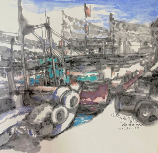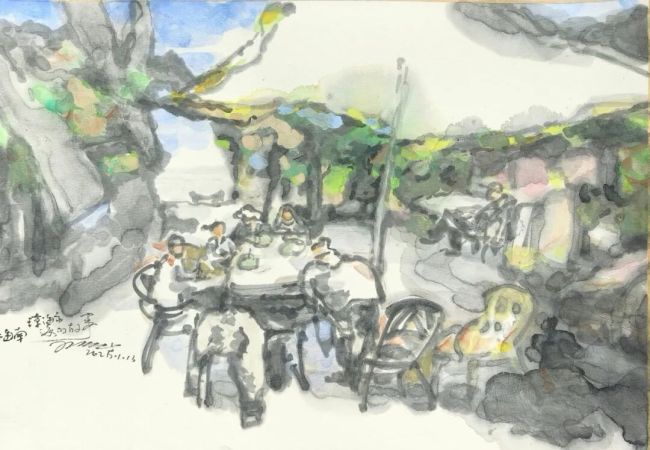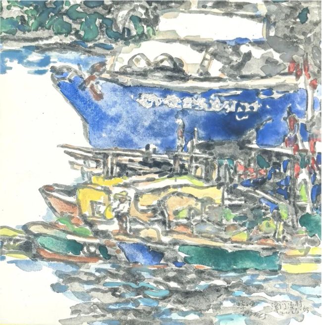 作品《重庆塘河古镇·写生》以传统水墨工具为媒介,聚焦塘河古镇的建筑肌理,坡、屋顶、石砌路与空间质感,通过浓淡交织的墨色层次,枯笔皴擦的墙面、氤氲晕染的街巷,既保留水墨写意传神的传统特质。又精准捕捉巴渝古镇的在地风貌,实现水墨语言与地域景观的在地性对话;既基于实景写生,还原古镇的沧桑质感,又以主观化的笔墨重构,如:大面积墨色块面的形式处理,强化画面张力,让对景模写升华为对历史空间的精神关照,同时紧扣塘河古镇的巴渝历史脉络,通过对老建筑、旧街巷的选择性刻画,在水墨语言的当代转化中完成对本土文化遗产的视觉叙事与人文传承,最终形成以地域为根,以写生为径,以当代水墨为语的创作体系,为本土人文景观的艺术表达提供了独特范式。