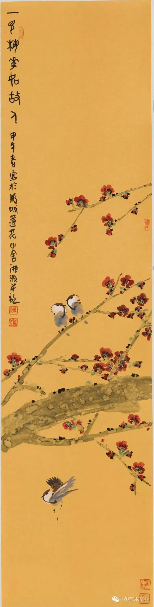 “草木芳华”主要展出陈湘波最具特色的泥金纸作品,呈现他在这种缺乏生宣渗透效果的纸张上创作水墨交融视觉效果的写意花鸟画作品。泥金纸虽富丽堂皇,但陈湘波笔下生机活泼的丰富花鸟世界和浓郁的文人审美情趣,却赋予它们清新自然的抒情意味。