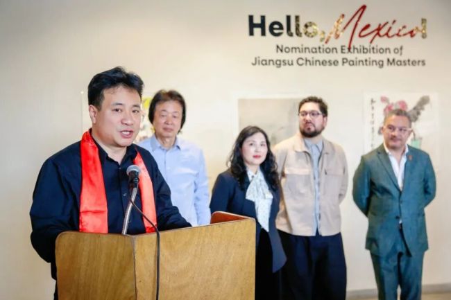 下加州文化局副局长古铁雷斯、博物馆与美术馆处处长福蒂斯先后致辞。致辞中,墨方代表动情表示,在墨西哥当地面临特殊社会治安形势的时刻,江苏艺术家代表团不惧风险、克服重重困难如期赴约举办展览,令当地民众深受感动,真切感受到了中国人民的深情厚谊与珍贵情谊,谨向远道而来的中国艺术家致以最热烈的欢迎和最崇高的敬意。高度肯定中墨文化交流长期以来取得的丰硕成果,一致认为,此次展览是墨西卡利有史以来第一个中国画展,为墨西哥民众打开了认识中国、读懂江苏的重要窗口,期待以本次展览为新起点,持续深化两地文化与艺术领域务实合作,推动墨中友好关系不断迈上新台阶。