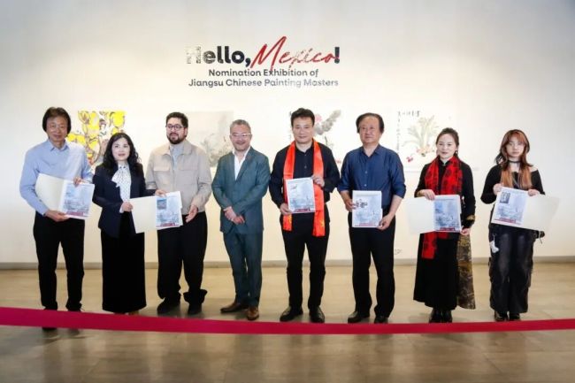 随后,中墨双方重要嘉宾共同为展览剪彩,宣布“你好,墨西哥——江苏中国画名家提名展”正式开幕。全体嘉宾合影留念,定格下这场跨越山海的艺术盛会。
