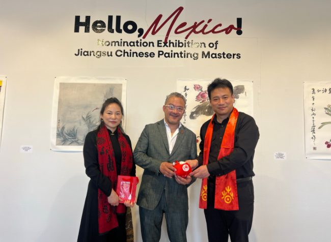 当地时间2月24日,“你好,墨西哥——江苏中国画名家提名展”在墨西哥墨西卡利美术馆正式启幕。中国驻蒂华纳总领事傅新蓉,中国画学会副秘书长、江苏省中国画学会会长翟优,江苏省中国画学会党支部书记、学术委员会委员张广才,常务理事周胜荣、樊蕾,理事张莉,下加州文化局副局长古铁雷斯,下加州文化局博物馆与画廊处处长福蒂斯,墨西卡利美术馆馆长埃斯皮诺萨,中墨友好促进会执行主席兼秘书长梁绮梅等中墨嘉宾及200余人以线上线下的形式出席开幕式,共赏东方艺术雅韵,共叙文明互鉴深情。本次展览以丹青为桥、以笔墨为媒,将中华传统书画精髓与水韵江苏的人文底蕴远渡重洋带到墨西哥,为中墨文化交流谱写了浓墨重彩的崭新篇章。