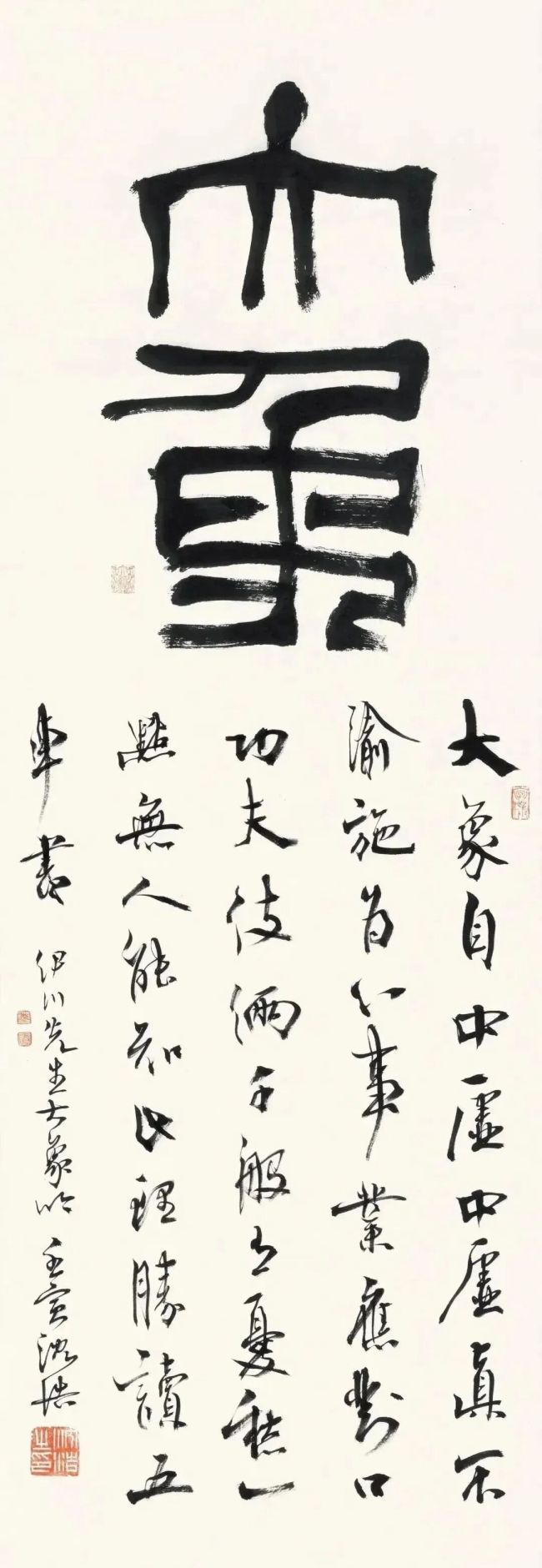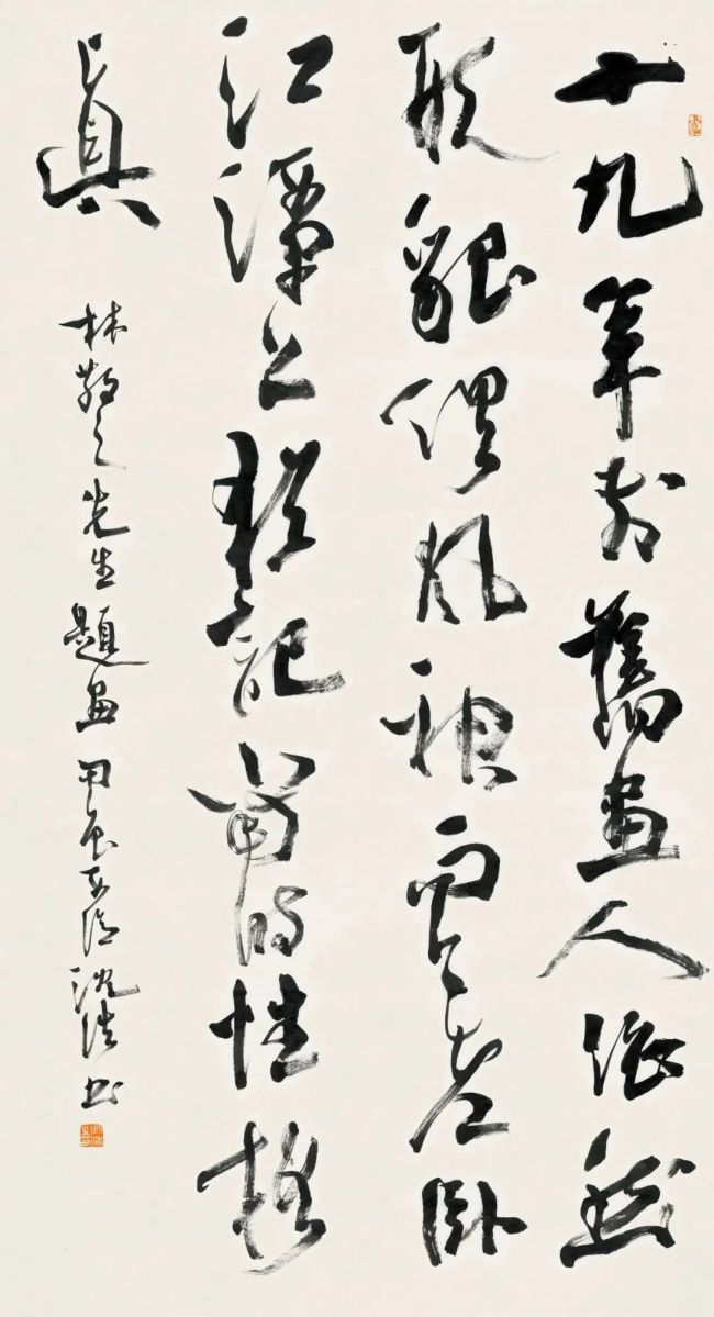 沈浩的书法,根脉深稳,气息醇和。他长期浸淫于古典书风之中,于篆隶的朴厚、行草的灵动中反复打磨,逐渐形成了兼具骨力与韵致的个人面貌。其线条不事雕琢,却处处见功底:起笔收笔之间,藏着岁月的沉淀;转折提按之处,透着心性的笃定。他不追求夸张的形式与炫目的技巧,而是着力于线条本身的质感——或厚重如磐石,或流畅若行云,或苍劲似古木,或温润如玉。线条在他笔下,不再是单纯的造型语言,而是情感与气度的载体。观其书,不见躁动与刻意,只觉气定神闲、意脉贯通,仿佛能听见笔墨与纸帛相融的声音,感受到书写当下那份从容与真诚。