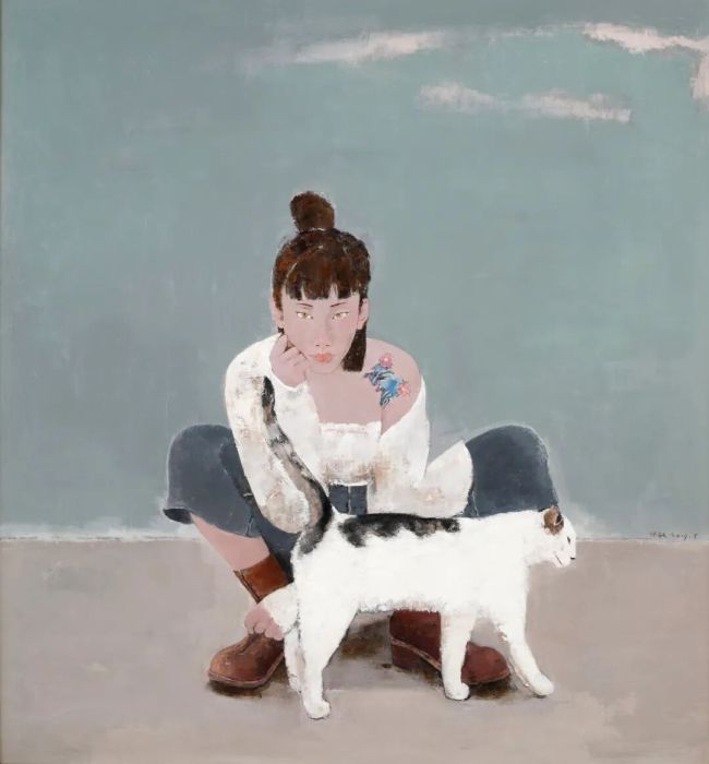 《猫·女孩2》80×60cm布面油画2021年