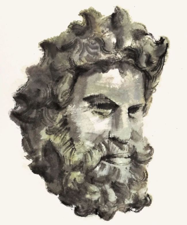 《普希金美术馆雕塑写生》纸本水墨