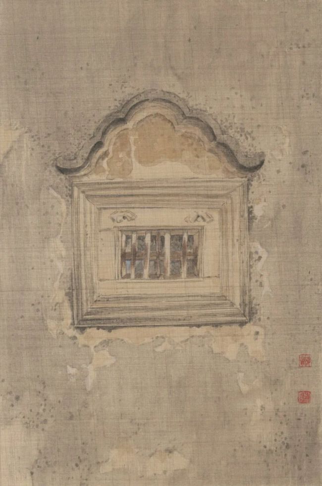 《潮汕写生:侨乡旧窗之一》绢卡彩墨