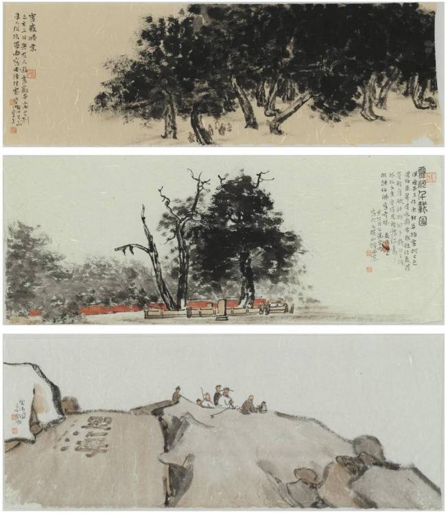 《天下西湖》作为李学明的代表作之一,被中国美术馆收藏,堪称典雅之作的范本。这幅2004年创作的纸本设色作品,以200cm×68cm的尺幅,展现出开阔的意境。画面中的人物线条取法大篆,简洁而朴茂,兼具骨力与韵味,正是“以书入画”的典范,符合传统写意画“骨法用笔”的核心要求。墨色运用浓淡相宜,积墨、宿墨交替使用,既显厚重又不失通透,完全遵循了传统水墨的运墨之法。色彩上仅用赭石、花青等原色,与水墨相互映衬,呈现出“原滋原味”的传统审美,无一丝刻意雕琢之感。作品从笔法到墨法,从构图到气韵,皆可追溯至宋元以来的写意传统,却又融入自身理解,做到了“有传统而不泥古”。