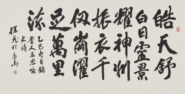 面对百年未有之大变局与中华民族伟大复兴的战略全局,新时代的中国画家更需坚定文化自信。这份自信,源于对五千年文脉的深刻理解,源于对“天人合一”哲学精神的当代体悟,更源于对伟大时代火热生活的深情投入。我们既要“正本清源、贴近文脉”,深入挖掘传统精髓;又要“把握时代、回应现实”,让笔墨随时代而歌。走出一条具有中国特色的中国画现代化之路——从民族土壤中生发,有条件地借鉴世界优秀文化成果,创造出属于我们这个时代的新经典、新高峰。我们看到,这次学会展出的作品,风格多元、气象万千,或雄浑壮阔,或清雅隽永,体现出老师们对笔墨本体语言的锤炼、对绘画内在规律的深刻思考,以及对“古与今”“中与西”等核心命题的认真求索。作品汇聚着时代人文精神贮存的朴素,敦厚,智慧,精进与和谐的真善大美之境界。我们能清晰感受到作品中蕴含着日益增强的民族自信、文化自觉与创新勇气。每位老师以世界的眼光、民族的精神,扎根生活沃土,回应时代召唤,在传承与创造的张力中,不断赋予中国画新的生命力与当代价值。我们感受到学会全体老师更加深入研究中国画文脉传承与笔墨内在规律,将自已生命情感融入生活,融入社会,融入时代,融入伟大的华夏文明,将时代审美体验与笔墨出新凝聚在家国情怀大美中,写劳动者朴素大美,写祖国河山大美,写时代真善美,把自己心性的真切境界同家国,同理想自然相连,给予笔墨主题和人文精神不息的生生气象。今天中国画学会凝聚着老中青三代艺术家共同为中国画传承出新,展现中国画为时代创造,就若中华审美大家园,每位老师在家园辛勤深耕,自觉体悟中华文化雄浑与自然的精深境界,以自已深入生活扎根人民的深厚情感与时代齐一,与劳动者齐一,与中国画鲜明的时代生命力齐一。