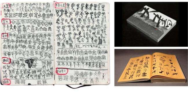 韩美林遍访全球各地,搜寻那些我国历史上、文字统一之后不再使用、待考、不知出处、没有破译、无家可归的远古文字,不仅将它们记录在一个又一个的手稿本上,而且还翻阅了大量的“古文字类编”书籍作为资料辅助进行整理。在这个过程中,他通过自己的收集进行钩沉、记录和对比,以便在接下来的艺术创作中,可以从这些手稿中寻找到丰富的民族文化符号。
