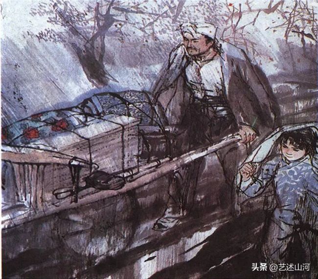 这本《铁木前传》是杜滋龄1986年创作的,改编自孙犁的同名小说。当时杜先生正值不惑之年,为了画好书中那些铁匠、木匠和农村人物的神韵,他专门两次跑到山东聊城、沂蒙一带去体验生活,跟当地的老乡们聊天,搜集第一手素材。这种严谨的创作态度,现在真的很少见了。回来之后他只用了两三个月就完成了全套40幅作品,效率高得惊人。杜先生自己后来回忆说,他最喜欢的是第13页小满儿背靠着碾子那张,可见他对每个人物都倾注了心血。