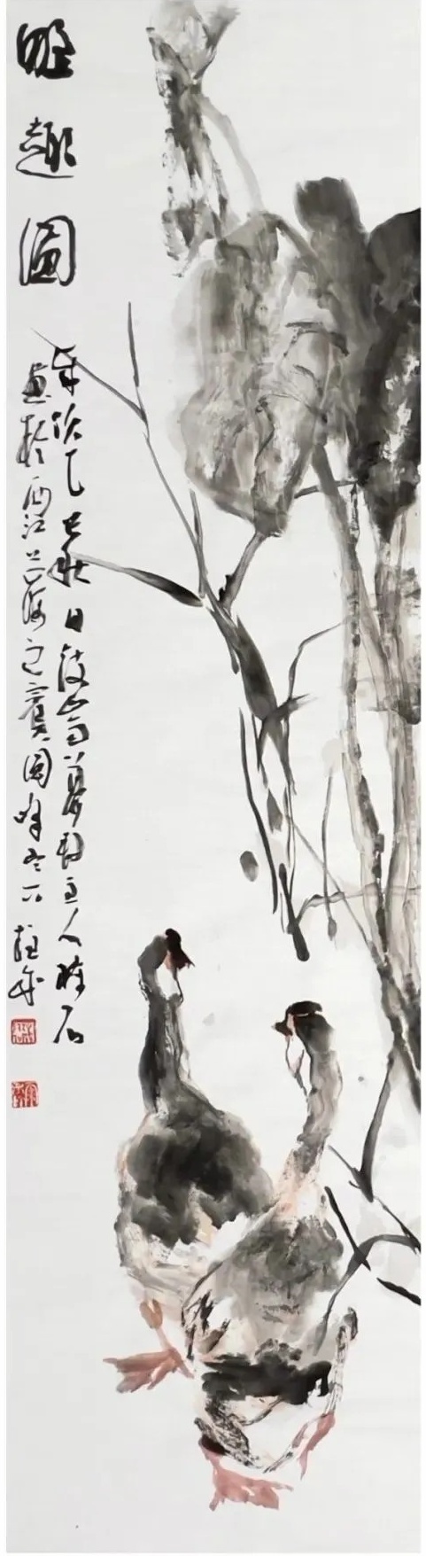 《野竽双鹅图》180cm*48cm 2025年
