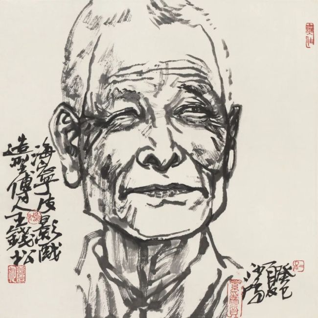 1980年代中期,省群艺馆开展全省民间美术抢救收集整理研究工作。还在海宁文化馆工作的张谷良带我骑自行车到斜桥镇找到王钱松。请他把海宁皮影戏的传统造型用工笔画完整地记录下来。2012年4月17日,我们再次造访王钱松,他已经80岁,还住在老地方。海宁皮影戏是宋廷南移时自北方落脚海宁,经过近千年演化成江南独有的面貌。皮影戏曾经红火,参加过全国的汇演,“文革”中衰落。1979年,王钱松组织老艺人再创斜桥戏班,自己制作皮影,成为重要的传承人,获得省文化厅颁发的“天工奖”和“民间艺术家”称号。