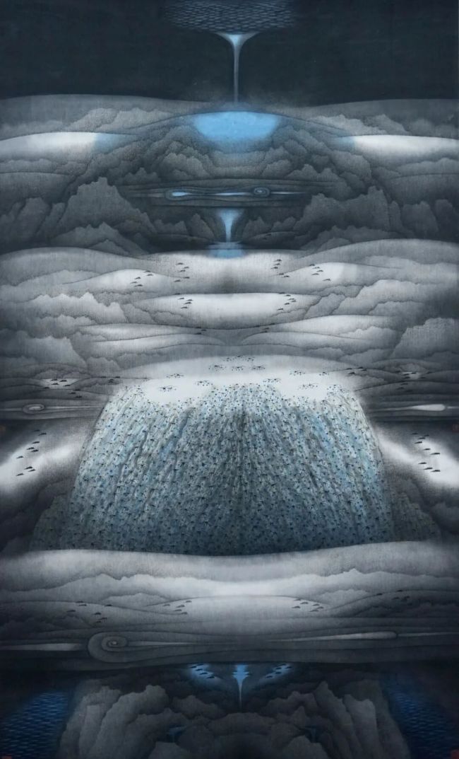 卢禹舜先生表示,他是用探索性的抽象语言符号和图式,尝试表达对神秘的宇宙洪荒,对那恍兮惚兮、寂兮寥兮的天道的哲学探究和追问;是“唐人诗意”“德为良田”及后来的“精神家园”系列的思想基础,也是为忙碌喧嚣的现实人生创造的诗意栖居的理想家园,更多表达的是一种带有浪漫主义色彩的中国文人式的诗性审美人生态度。