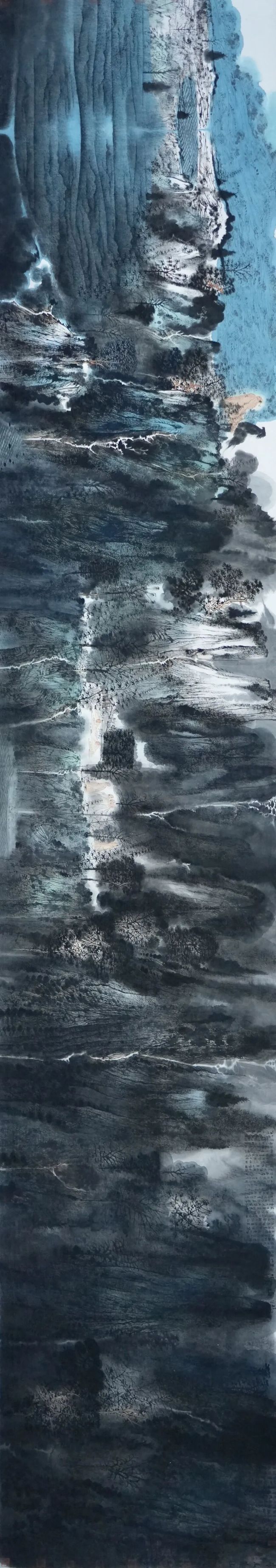 卢禹舜先生出生于北国冰城,北方广袤的土地和森林、淳朴善良的人民、晶莹剔透的冰雪,在他的艺术基因里涂抹上了静谧博大、神秘幽远的底色。卢禹舜先生是中国当代著名美术家,也是伴随着改革开放而崛起的新时代的中国画代表人物,他以崭新的视角将传统文化和时代精神完美融合,将人与自然相统一。他的绘画呈现出一个恢弘气象、充满灵性的神秘世界。那恢弘的气象、隽永的意蕴、厚实细腻的笔墨,构成了独特面貌。卢禹舜先生的作品像一道曙光,让人充满了幻想,感觉既远古,又现代,既有传统中国画技法和材料的特点,同时又很具新意,充满了当代生活气息,给人旷远辽阔、心旷神怡之感。