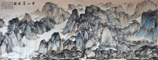 从黄山的雄奇到沂蒙山的苍茫,从桃源的悠远到山居的静谧,林存安的丘壑布局始终围绕“人”的精神展开——山水不仅是可观可游的空间,更是安放心灵的家园。他笔下的山水,从来不是孤立的自然景观,而是融入了人的情感与人文的温度,自然丘壑与人文情怀相互交融,形成了“自然即人文,人文即自然”的艺术境界,彰显着他对自然与人文和谐共生的深刻体悟,也让他的山水画更具感染力与生命力。