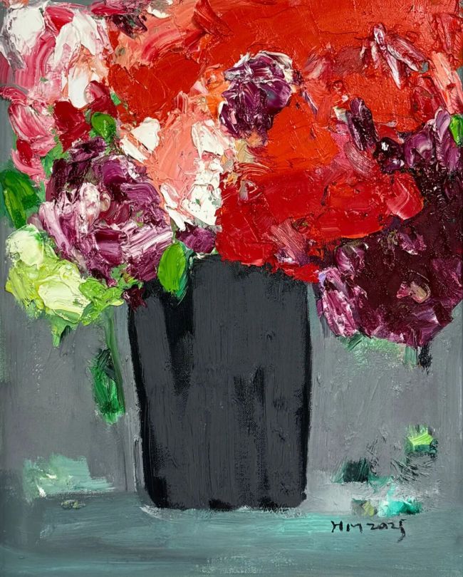 画花和画人不一样。画人要反复思考,一笔一画都得讲究;画花的时候,却什么都可以放下。孙洪敏说,那些花大多是晚上画的——夜深了,画室里只有她和画布,笔触在灯光下游走,色彩一层层铺开,心里有什么,画上就是什么。