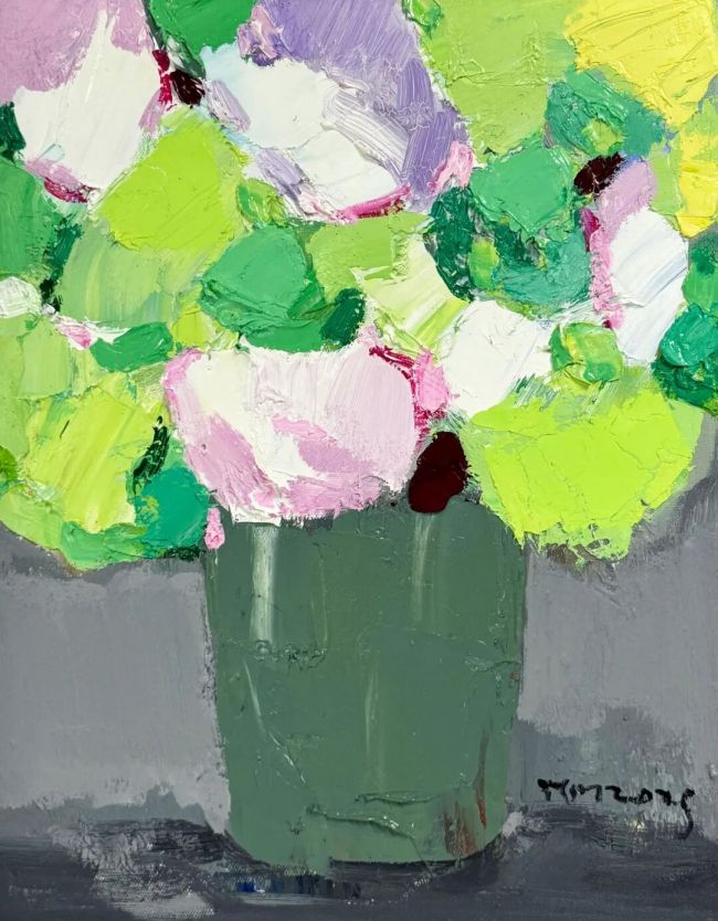 手在动,心却静了;颜料铺开,情绪也慢慢散开。花一丛丛地开在画布上,心里的结却一点点解开了。