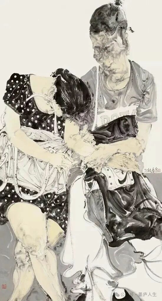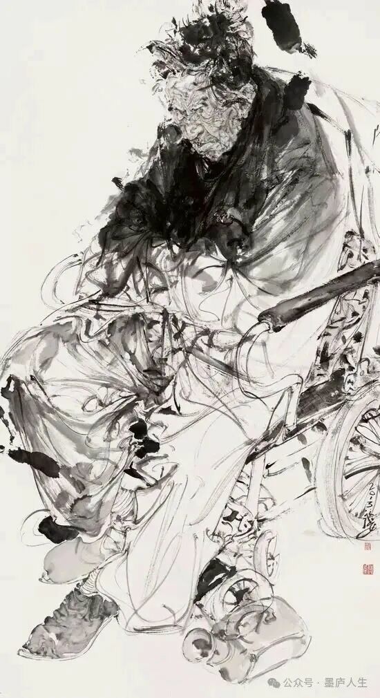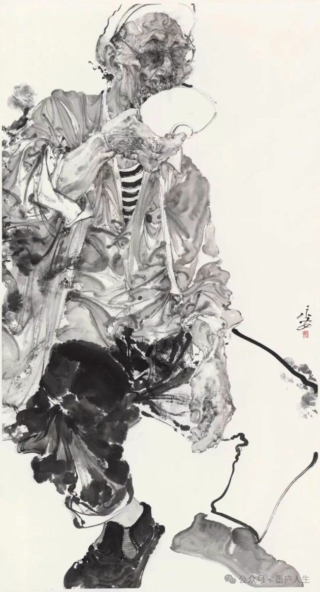 姜永安的水墨人物画,核心在于对生命质感的精准捕捉与精神内核的深度挖掘。他摒弃了流于表面的形象描摹,拒绝以程式化的笔墨去构建虚幻的审美意象,而是选择直面生命最本真的状态——无论是岁月雕琢下的沧桑面容,还是生命存续中的困顿与坚韧,都成为他笔墨下的核心表达。从画面呈现来看,那些纵横的皱纹、枯瘦的肢体、微蹙的眉眼,不再是简单的形态刻画,而是承载着生命经历的风霜与精神的重量。他以独特的笔墨技法,将墨色的浓淡干湿与人物的生命状态相融合,浓墨处见生命的厚重,淡墨处显精神的空灵,干湿墨色的交织间,生命的鲜活与精神的层次尽数呈现,让观者在凝视画面时,仿佛能触碰到人物灵魂的跳动,感知到生命背后的故事与情愫。