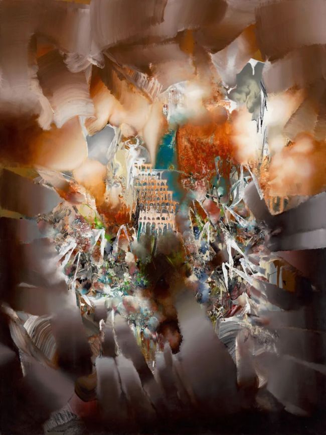 策展人杜曦云认为,钟飙早期以视觉蒙太奇映射时代景观,近年更注重潜意识能量的释放。