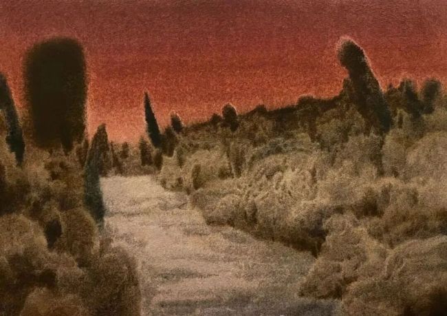 从色彩美学的角度来看,他的画面极少出现高纯度的原色,而是通过复杂的罩染与叠加,呈现出一种高级的、富有时间沉淀感的中间色调。这种“淡而不薄”的色彩处理,既保留了水彩媒介特有的通透感,又赋予了画面一种油画的厚重质地。在那一片片看似平淡的灰色之下,实则暗藏着丰富的色相变化:冷色中有暖意的渗透,暗部里有光感的流动。这种微妙的色彩关系,使得他的山水虽然朦胧,却不显单薄;虽然淡雅,却不失层次。它不仅仅是对自然光影的模拟,更是对一种内心情绪的视觉化呈现。