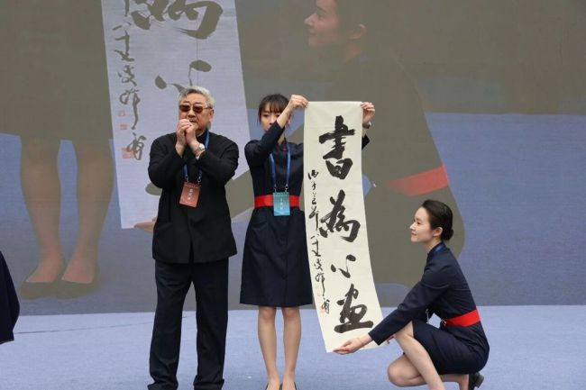 韩天衡先生现场挥毫书写“书为心画”四字,兼具金石之气与书卷之韵,尽显其“雄、变、韵”的独特艺术风格。寥寥数笔,墨韵生动,不仅写出了兰亭千年的文化厚重,更寄托了对中华书法艺术薪火相传、繁荣兴盛的美好祝愿。开笔之作气势恢宏,意蕴深远,赢得现场嘉宾与书法爱好者的阵阵赞叹。