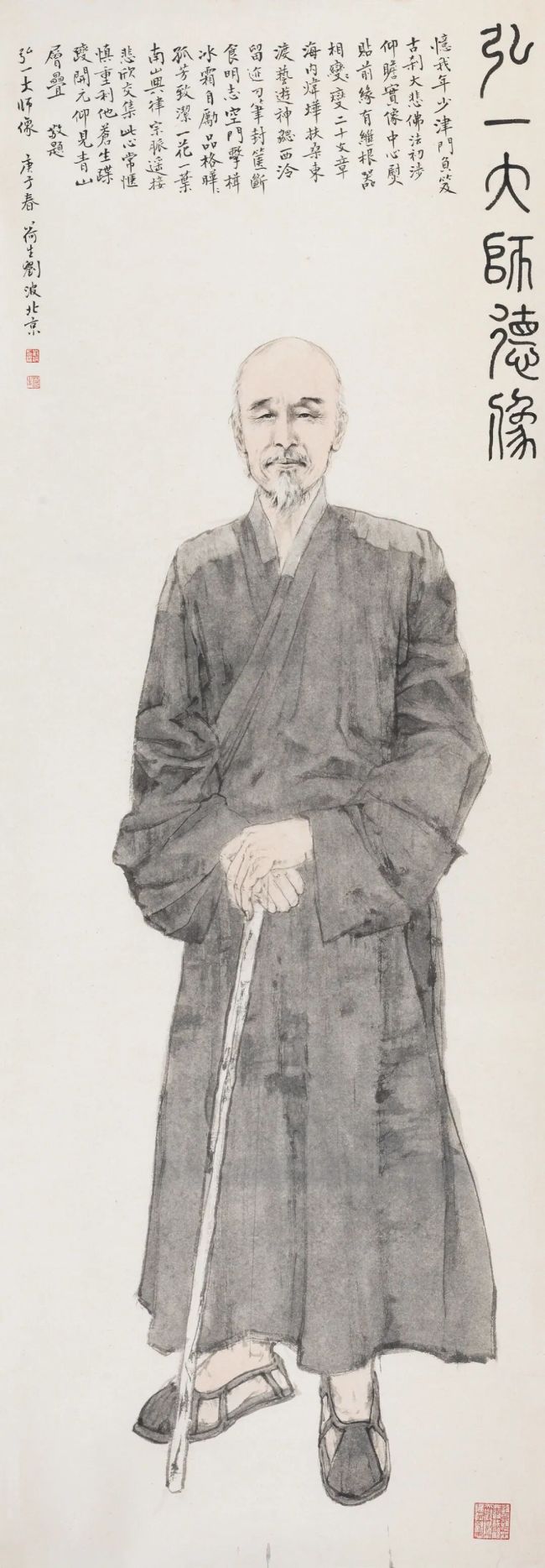 为完成这部皇皇巨制,达成新的艺术高度,刘波跨过了诸多难关,实现了自我超越和升华。其一是心定,真正与大师巨匠们进行心灵的对话,通过探究他们的生平事迹、著作、照片,多维度揣摩人物心态,以心为画笔,准确把握人物的精气神。其二是点睛,让大师巨匠的眼睛表达他们的心声和信念。中国传统绘画讲究画人眼中的神气,顾恺之说“传神写照,正在阿堵中”,这“阿堵”的灵光异彩也是画家在大师巨匠的精神感召下,彼此内外双照、心灵契合,搭建起与阅读者沟通的心灵之桥。其三是艺精,巧妙地融汇了院体工笔与文人写意等传统国画技法,布置简净,随形赋彩,又吸收西洋油画构图与明暗色调运用。用笔娴熟而凝重,气韵灵动而骨力老成,摄取大师巨匠们瞬间之神情意态,结体勾勒,神采毕现。尤其是面部淡墨勾写,线条与色块交相呼应,运笔一气呵成。其四是重素,只画人物,去除一切环境背景、职业道具和附加装饰,突出人物神情、做派、气度和身姿,实践了孔子所言“绘事后素”,即先得有洁白的绢面,才能绘出画面,其衍生之意在于人之美质为先,是绘事之先决条件,纹饰和技法是为本质而增色的。其五是意赅,继承了中国古代人物画像题赞的传统,使用七律、七绝、长歌、长短句和散曲等形式,概括凝炼大师巨匠们一生成就和精神境界于大美的汉字之中,文以载道,教化人心。其中许多佳句体现出“两句三年得”“语不惊人死不休”的殚精竭虑,更是创作者执着严谨的体现。其六是书逸,题赞笔法畅达、墨彩纷呈,所用楷、行、草、隶、篆各体结构有序、章法森严,用印精当、方寸传情,彰显着文化之魅、笔墨之韵和书法之雅,可与画、赞并称“三绝”。