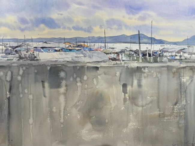 《岸》纸本水彩60cmX45cm