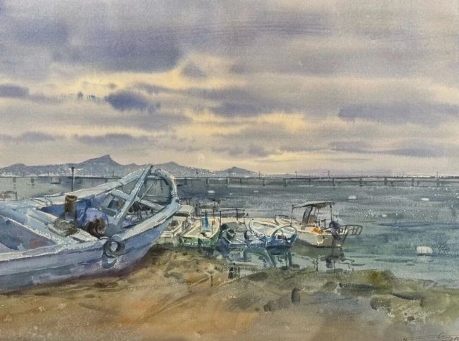 《金蛇头小渔船》纸本水彩60cmX45cm