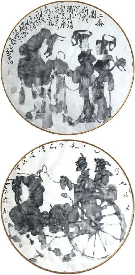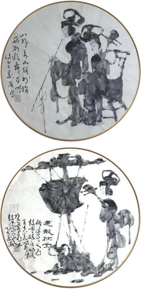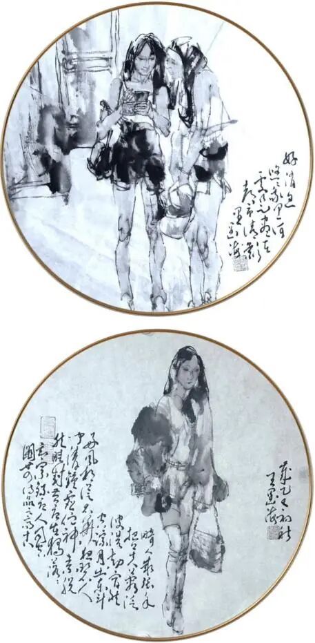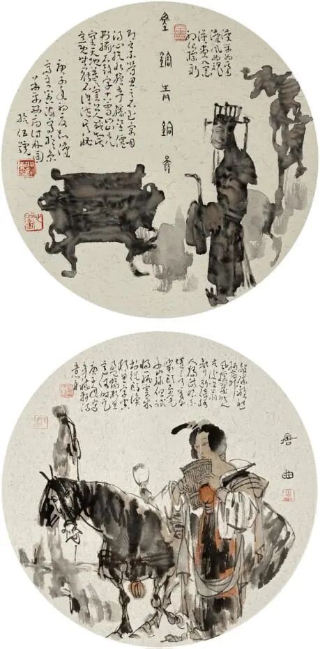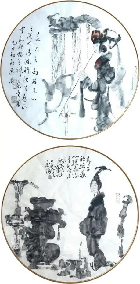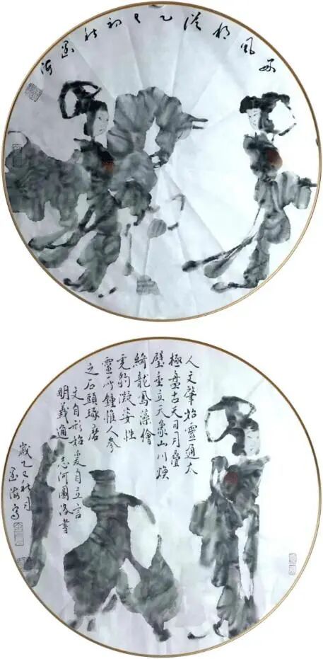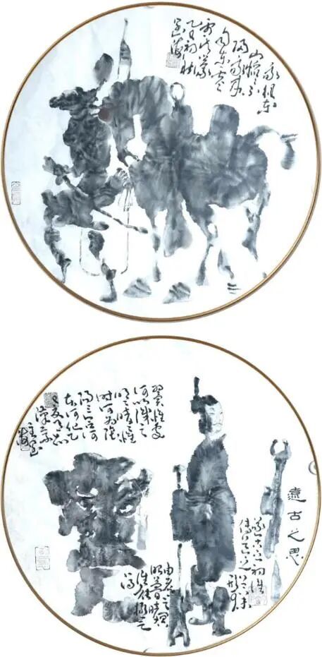根深者叶茂,泉浚者流长。王阔海之新汉画乃广取博采、自铸伟辞之戛戛独造也。庄子云:“水之积也无厚,其负大舟也无力。”(《庄子·逍遥游》)袁枚云:“文尊韩,诗尊杜,犹登山者必上泰山,泛水者必朝东海也。然使空抱东海泰山,而此外不知有天台武夷之奇,潇湘镜湖之胜,则亦泰山上之一樵夫,海船上之一舵工而已矣。学者当以博览为工。”(《随园诗话》)王阔海之创作,广取博览,由博返约,守正创新,独辟蹊径。顾恺之云:“凡画,人最难,次山水,次狗马。”人物之难,难在传神;传神之难,难在简约。王阔海之创作,造像典型,笔墨精简,传神自然,技法、诗意、哲思有机统一。