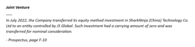 据SEC文件披露,2022年,公司转让尚科宁家股权给九阳股份控股股东JS环球生活时,是以“名义价格”进行的,即白送给受让方。