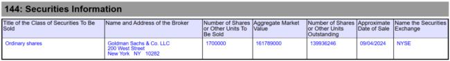 王旭宁最近一次出售是在2024年9月。这次,他通过出售170万股,套现1.6亿美元。