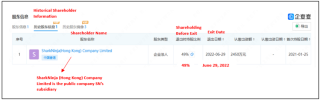 企查查还显示,尚科宁家曾是公司和九阳股份的合资企业,当时公司持股49%。2022年6月,公司突然退出了股东名单,从此九阳股份对尚科宁家100%持股。