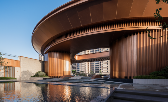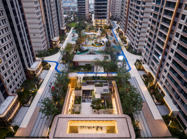 步入现场,上和院对归家仪式感的极致追求令人赞叹。除了恢弘大气的南大门卡地亚七星酒店式门庭,东大门同样展现出别具匠心的设计美学:在东入口处,香槟金镂空雕花与步步抬升的多维水系相映成趣,潺潺流水声伴随着蜿蜒的步道,营造出"流水生财"的美好意境。