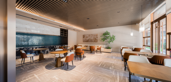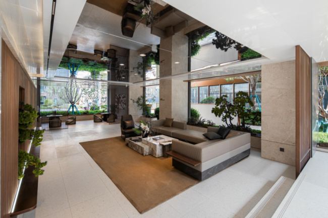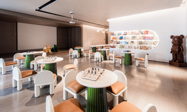 与院落景观的视觉冲击相呼应,内部的会所空间则诠释着另一种奢华维度。约2200㎡的私人会所堪称项目的灵魂所在。八重功能空间涵盖私董会客厅、家族高定私宴、领仕阳光健身等场景,打造出城市层峯交互的"高端俱乐部"。