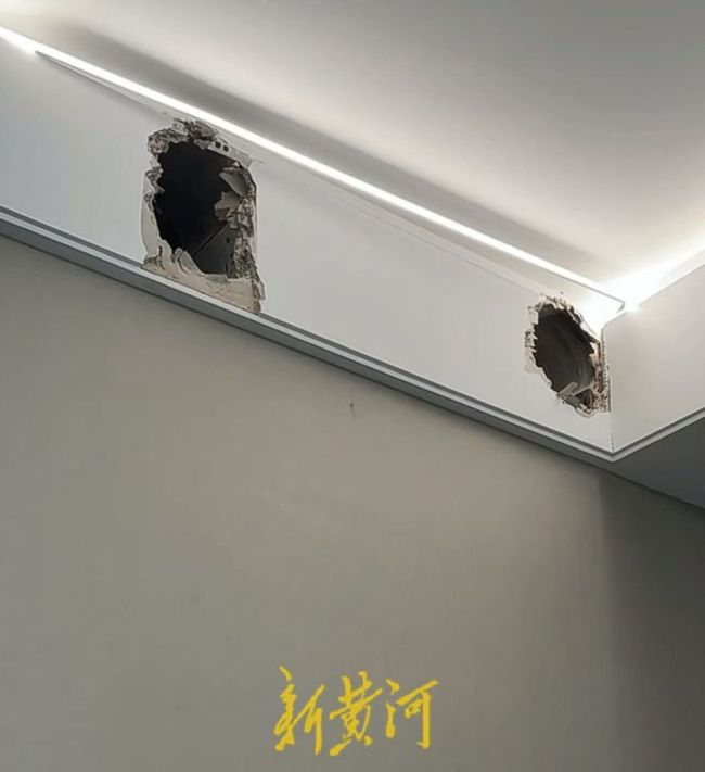 2025年12月26日,济南远洋万和公馆小区一名业主因家中房顶持续漏水,聘请验房师王清华上门对房屋进行检修排查。排查期间,王清华在业主家中一面墙体顶部的石膏板后方发现两处相距约70厘米的空心孔洞。1月9日,槐荫区住房和城乡建设局相关工作人员称,该孔洞为施工时空调新风管线预留孔洞,未进行封堵属于施工环节失误。