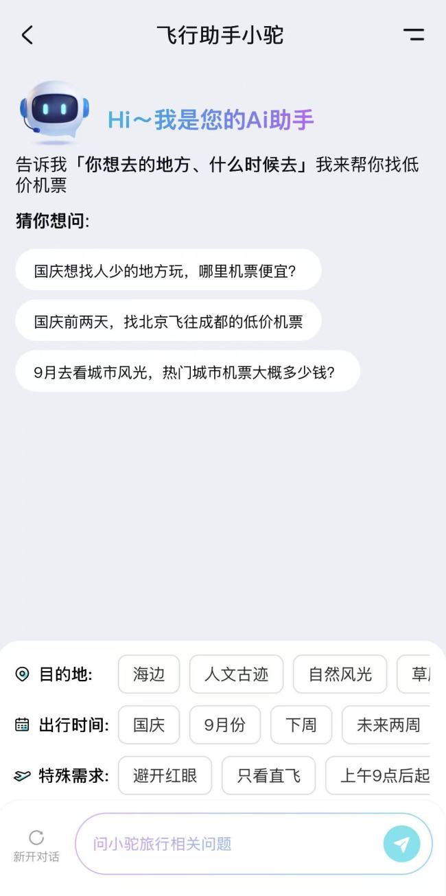去哪儿旅行的AI助手相关负责人介绍,近一个月,用户对国庆旅游目的地询问量大增,询问最多的关键词是“人少”“不挤”“不贵”。大家更倾向于“泛目的地”推荐,明确的是一类特质的景区,例如“赏秋”“红叶”“海边”“草原”“晒秋”搜索量环比8月上涨两倍;不明确的是到底去哪个目的地,例如同是“赏秋”,同一类目的地可替代性很强,没有必须去哪个目的地“打卡”的执念。