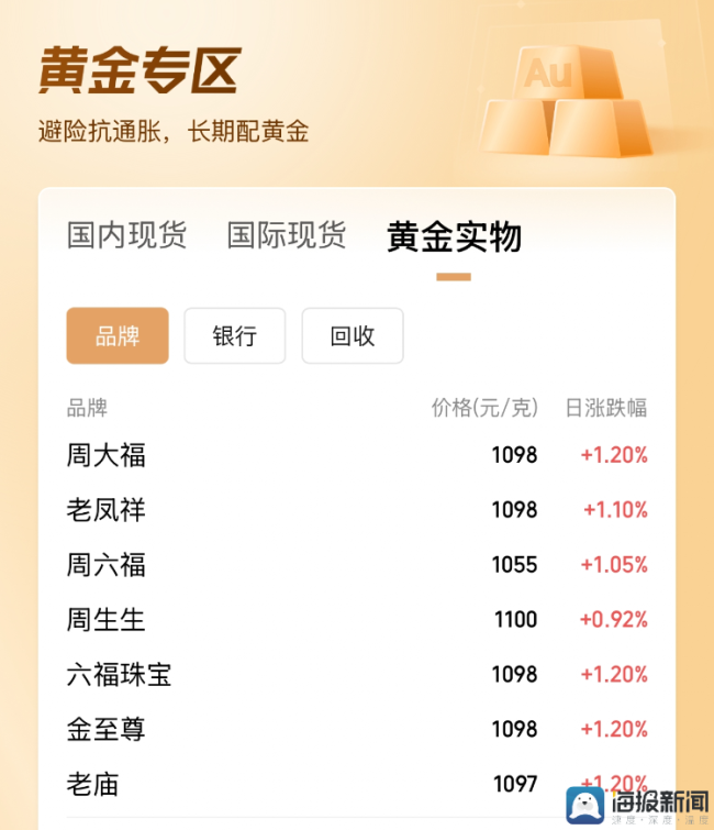 9月23日,国内金饰价格上涨,周生生品牌价格最高,再次涨至1100元/克。