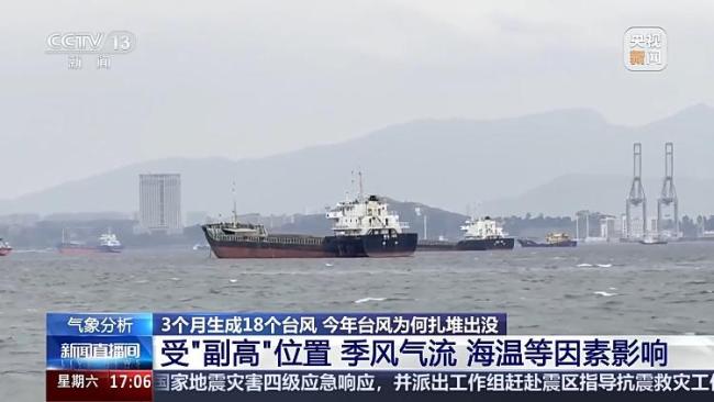 为何台风扎堆出现?专家介绍,这种情况主要受副热带高压位置、季风气流、海温等方面的因素影响。今年7月和9月,副热带高压较常年总体偏强、位置多偏北偏西,为台风形成及活跃提供空间;海表面温度高,利于台风生成及发展;台风在副热带高压环流边缘的低风切变区域活动,垂直方向的风速和风向变化相对较少,利于台风维持;副热带高压南侧对流活跃时,形成的热带扰动较多,也可能出现台风接连生成的情况。