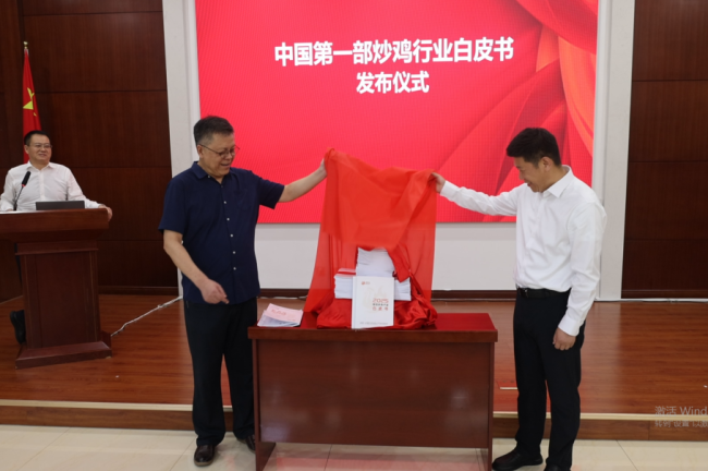 论坛还举行了《青阳炒鸡白皮书》的发布仪式。山东省餐饮与住宿行业协会会长张文魁,醴泉乡村振兴联合党委书记、山东财经大学产业发展研究院执行院长、青阳炒鸡协会会长高原出席发布会。