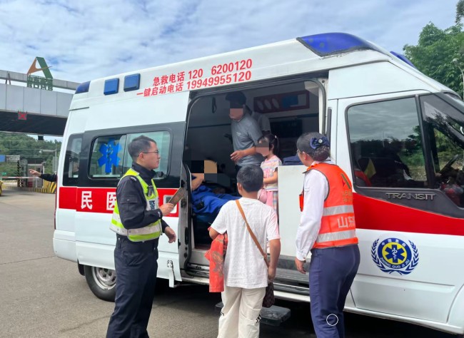 假期出行密集,部分司乘突然出现身体不适,山高人及时伸出援手,为司乘提供医疗援助。