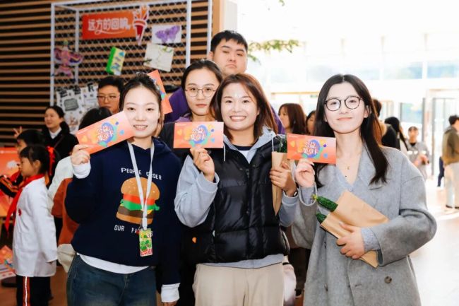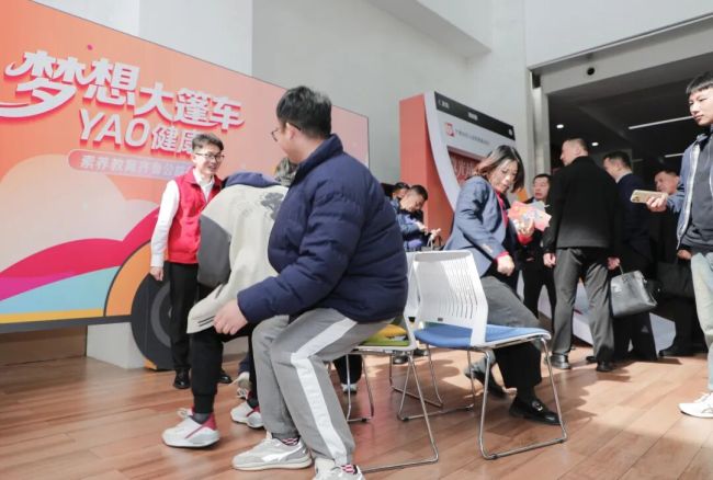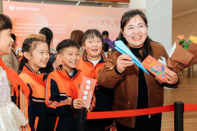 “百合花开”摊位前,大家全神贯注地用扭扭棒制作象征希望的百合花,在指尖绽放美好。“以书换蔬”区域排起长队,近300本爱心图书在此“变身”为新鲜蔬菜,这些书籍未来将捐赠至乡村学校,实现环保与爱心的双向传递。“YAO健康·趣探秘”变身健康知识竞赛擂台,大小朋友踊跃答题,在趣味中学习健康常识;“乘风去远方”环节,参与者手写祝福折成纸飞机,让梦想与寄语飞向远方研学之旅;“梦想大篷车”的抢椅子游戏,则让现场充满了童年的欢笑。