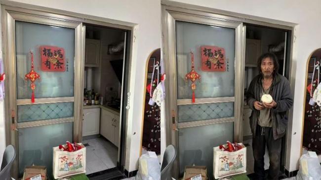 只需要在AI软件中输入一段提示词,一个拿着馒头的“流浪汉”就出现在了厨房门口(右图为AI生成画面)