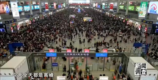 2月9日,候车大厅的旅客量逐日攀升。大家根据车站广播和不断更换的大屏信息,寻找着自己的列车班次,等待检票。