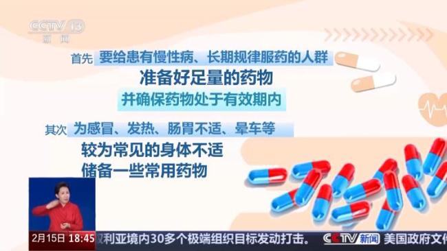 专家建议,首先,要给患有慢性病、长期规律服药的人群准备好足量的药物,并确保药物处于有效期内。其次,可以为感冒、发热、肠胃不适、晕车等较为常见的身体不适储备一些常用药物。