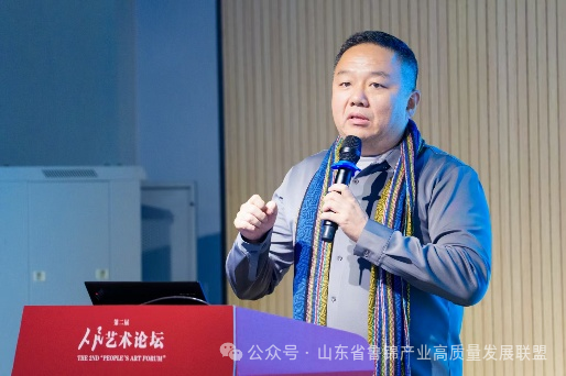 鲁锦产业高质量发展联盟副理事长兼秘书长,鲁锦创新设计研发中心负责人、山东艺术学院城市艺术与创意学院院长王大海教授在论坛上分享的鲁锦“研学产创”一体化开发的山艺模式,成为非遗活态传承的亮点案例。