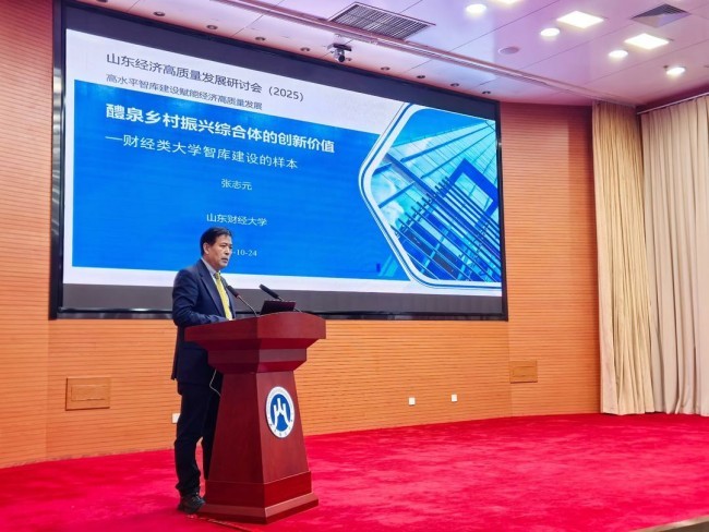 10月24日,由山东财经大学主办,科研处、中国经济研究院共同承办的“山东经济高质量发展研讨会(2025)暨《山东经济高质量发展报告(2025)》发布会”在燕山校区召开。会议以“高水平智库研究赋能经济高质量发展”为主题,汇聚来自中央部委、山东省直机关、全国高校及研究机构的200余位专家学者,共话山东经济高质量发展新路径。张志元教授作主旨演讲。