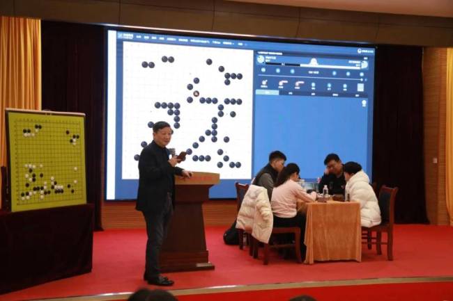 现场的氛围热烈非凡,棋手们在台上专注比赛,而棋迷们则台下现场观战,全神贯注地观看棋手对弈的每一个细节。著名国手曹大元九段现场挂盘讲解,他深入浅出地剖析着每一步棋的精妙之处,让棋迷们仿佛置身于棋局之中。更贴心的是,这种讲解方式不用担心棋手们听到,同时观众还可以现场提问,与大师进行互动交流。一时间,报告厅内气氛活跃,大家你一言我一语,共同探讨着围棋的奥秘。