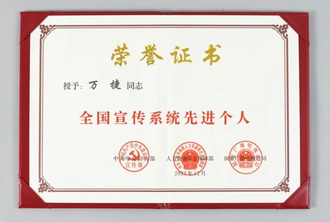 此次,万捷董事长获得“全国宣传系统先进个人”称号;2020年,被评为“深圳经济特区建立40周年创新创业人物和先进模范人物”;2009年,入选中宣部全国宣传文化系统“四个一批”经营管理人才。这是党和政府对其推动中华文化传承创新、献力祖国文化事业的高度认可和充分肯定。
